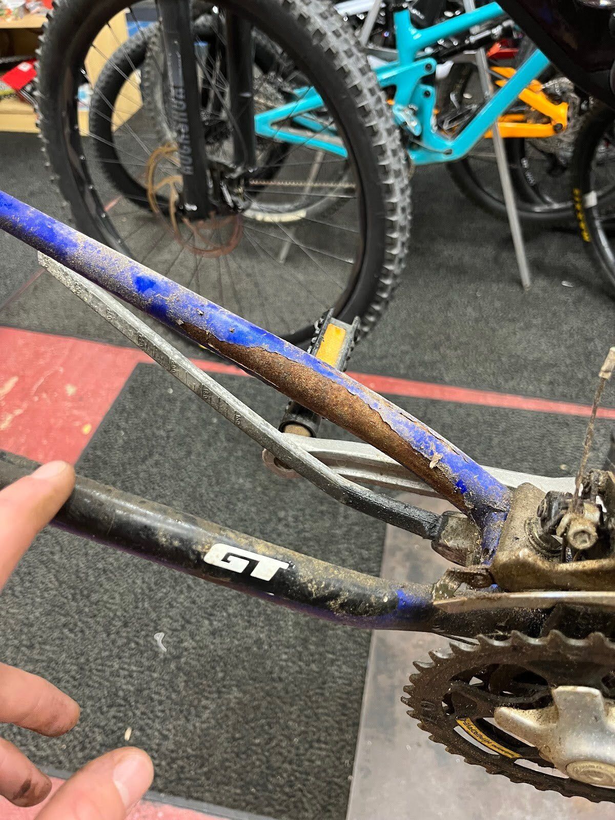 Keeping the theme of bike simplicity rolling through the end of this week, I thought it might be fun to share some fun that I’ve been having recently taking it back to the 90’s. While on the daily Facebook Marketplace perusing, I came across a his-and-hers set of mid-90’s GT Outpost Trail mountain bikes. I had been on the lookout for just such a pair of bikes that would suit both my girlfriend’s want of having a non-road bike to go to and from town on, and my desire to have an old steel frame mountain bike to mess around on. This was the occasion I had been waiting for. $60 and a few hours of replacing rusted cables and cleaning caked-on crud later, and we both had a sufficient answer to our problems.